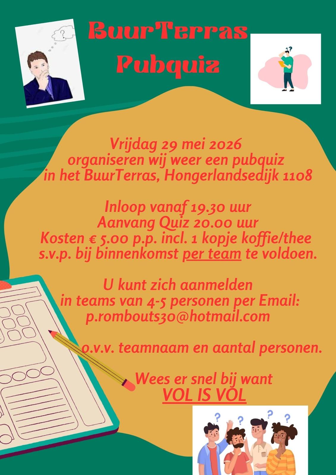 | 2026-05-2920.00Pubquiz | vrijdag | 29 mei | 20.00 | Pubquiz | info | ![]() |